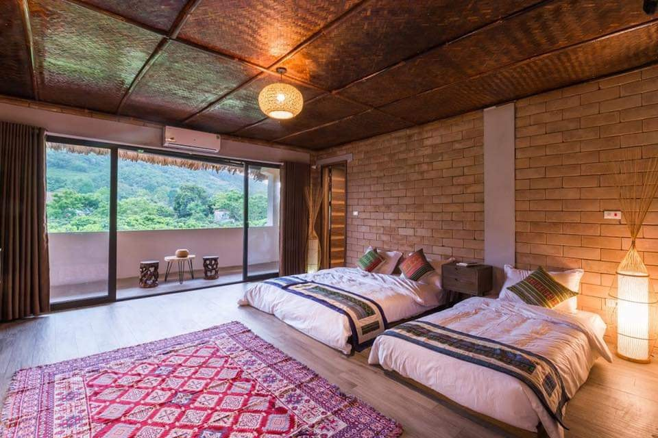 4 phòng ngủ riêng ( gồm 1 giường đôi + 1 giường đơn + 1 đệm dự phòng ) với chăn ga gối cao cấp kèm khăn tắm