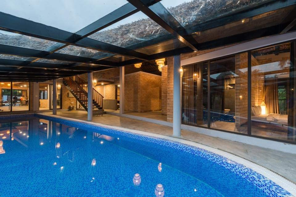 Bể bơi mái kính trong nhà 100m2 phục vụ từ hè xuyên đông